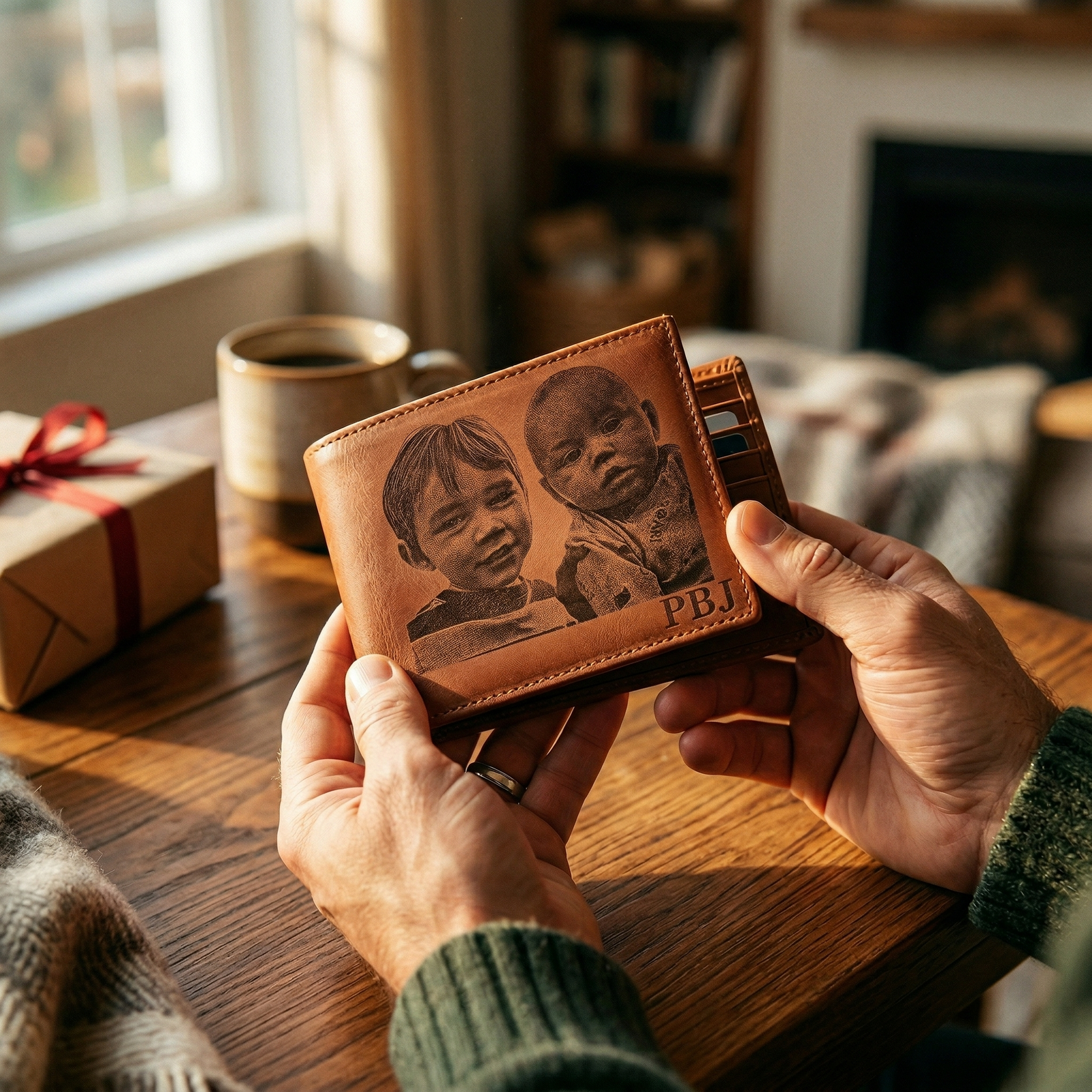 Your words, etched in leather. Upload a handwritten message or drawing, and we’ll engrave it onto our genuine leather wallets — making every gift truly one of a kind.